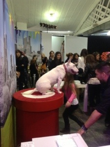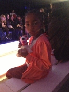The first show up was the Target Runway Showcase which featured Target’s bull terrier mascot which guests had the opportunity to take pictures with after the show. Guests also received a stuffed dog which is the bull terrier mascot for Target. My daughter enjoyed meeting her in person and also enjoyed taking pictures with her BFF’s and Tristan and Tyler. She loves the camera too and wants to be on the runway soon.