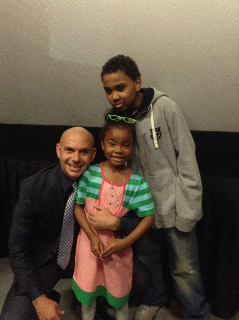 A lot of parents said they wish their kids would get to school on time the way they got to the screening early. My kids met up with their friends and were treated to free concession snacks and pictures with none other than Pit Bull and an autograph. He is very nice and wanted to give autographs for the kids and take pictures with almost everyone even though he was in a rush to another engagement. He said he was raised in a single parent home by his mom and encouraged the kids to listen to their moms and go for your dream.