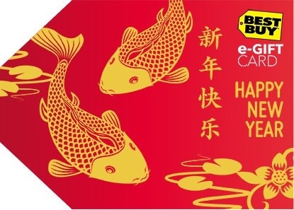 This upcoming year, Lunar New Year, which is based on the phases of the moon, falls on January 31st 2014 of our Gregorian calendar. Best Buy is helping celebrate the event with an Asian-inspired eGiftcard, available for purchase or gifting from BestBuy.com. Scroll to the right of the following link until you see the red giftcard with the two Koi fish: http://www.bestbuy.com/site/Electronics/Gift-Cards/cat09000.c?id=cat09000&ref=184&loc=01.