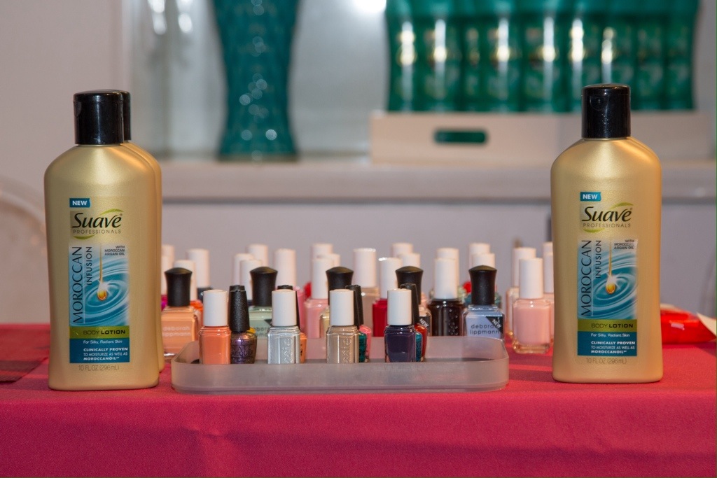 My friends and I walked into a beautiful penthouse filled with beauty and food products, cupcakes, amazing appetizers, drinks, a DJ spinning great tunes, beauty station, manicure station, and a roof deck where you could take gorgeous pictures.
