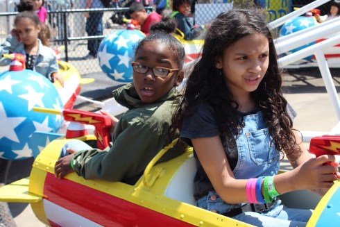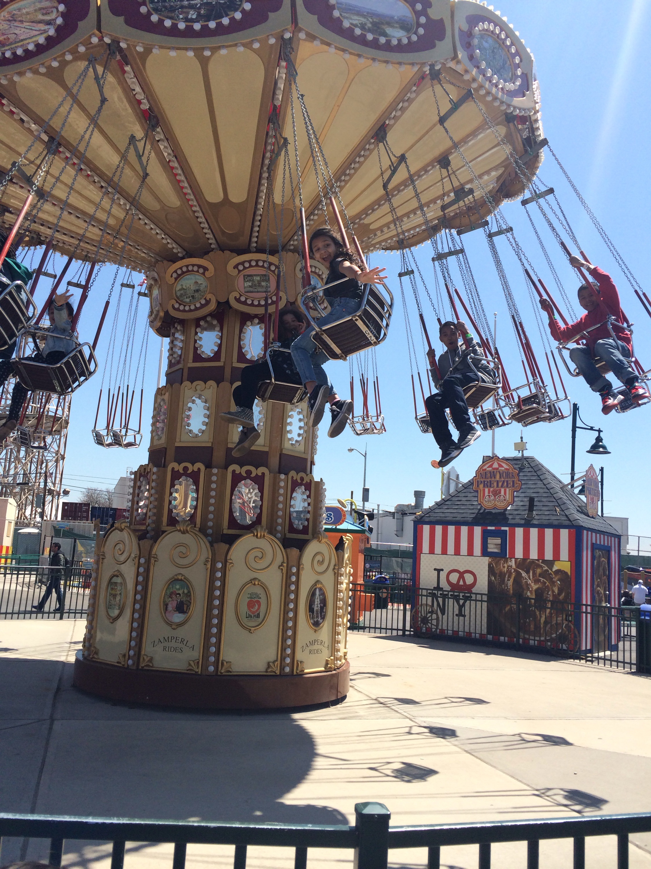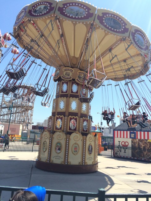It was chilly that day but we were wrapped up and got there early. We walked the Boardwalk until everyone arrived. After meeting up with more of our blogger buddies we checked in at B&B Carousell and had breakfast provided by Luna Park and learned about all the fun Coney Island has to offer. The Carousel was the first ride the kids rode on then staff took everyone to Luna Park and the People’s Playground.