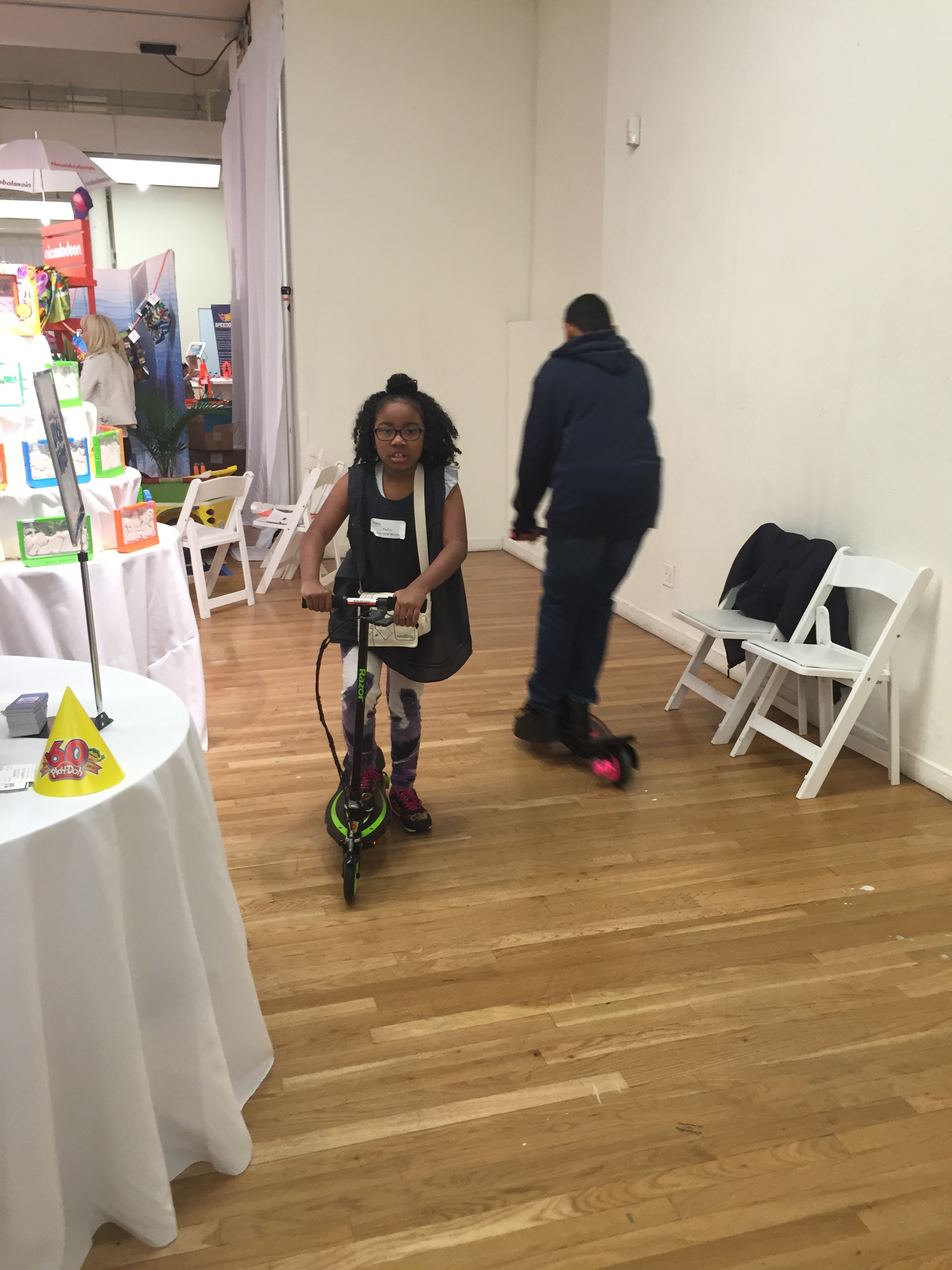 My daughter took a pic with her favorite You Tube Vloggers/Toy Reviewers (Disney Car Toys).My kids and every other kid ran through the curtains to get to test out al the toys. I though the parents were usually the beasts but the kids out did us. Lol. My daughter was excited to try out Wet Head and be the first to get wet. Next up Shopkins because she had to get samples of the new Season 5. She has seasons 1-4 now she’s on a mission to collect Season 5. They loved Razor WorldWide brand new Jetts. Just strap on and go. Also they couldn’t get enough of the scooters.