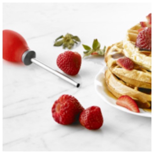 There are some helpful gadgets that you just have to have and the new Strawberry Huller from Trudeau is the one to get! Removing the stem and core from strawberries eliminates bitterness and enhances taste instantly! Innovative design offers a simple, safe, and effective alternative to knife hulling and coring. The stainless steel tube and silicone bulb come apart for easy cleaning and are dishwasher safe. #09912141 MSRP $8.99
