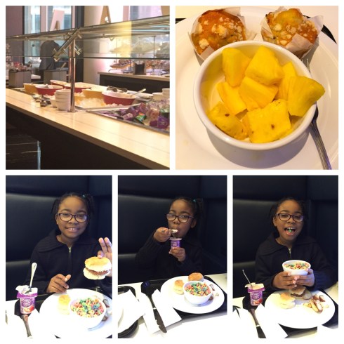 A full American Breakfast is served on the 3rd floor from 7-10a.m., Saturday and Sunday and 6:30-9:30a.m. Monday thru Friday. They have everything from coffee, tea, juice, scrambled eggs, french toast, sausage, muffins, bagels, oatmeal, cereal, potatoes, fruit, biscuits, waffles that you can make yourself in the waffle maker which my kids enjoyed doing. If you miss breakfast you can head to the Bistro for Breakfast, Lunch or Dinner, drinks and Starbucks Coffee.